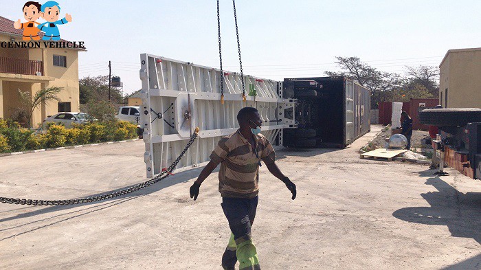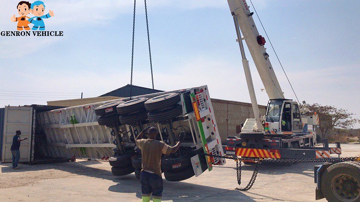 Arrival! Arrival! Genron flatbed trailer arrived in Zambia for customers to check - YouTube