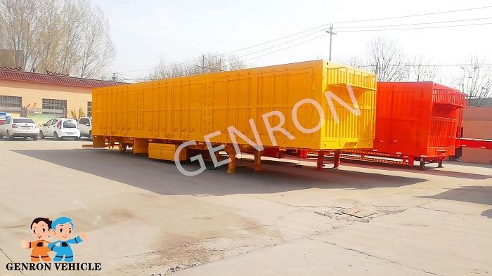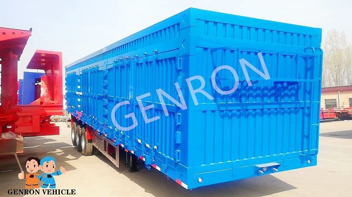 Size is 14800*2700*2200mm(height of box) Axle: Guangdong FUWA original axle, 20T*3pcs, wheel base is 1950mm Tire: 12.00R20, 13 pcs; Rim: 8.25-20, 13 pcs Suspension: Heavy duty mechanical suspension, thicken, 12mm, widen Spring Leaf: 16mm*12pcs WABCO emergency valve. Used to transport clothes and coals.