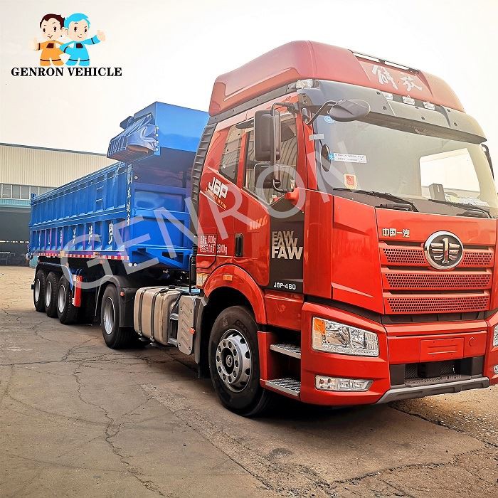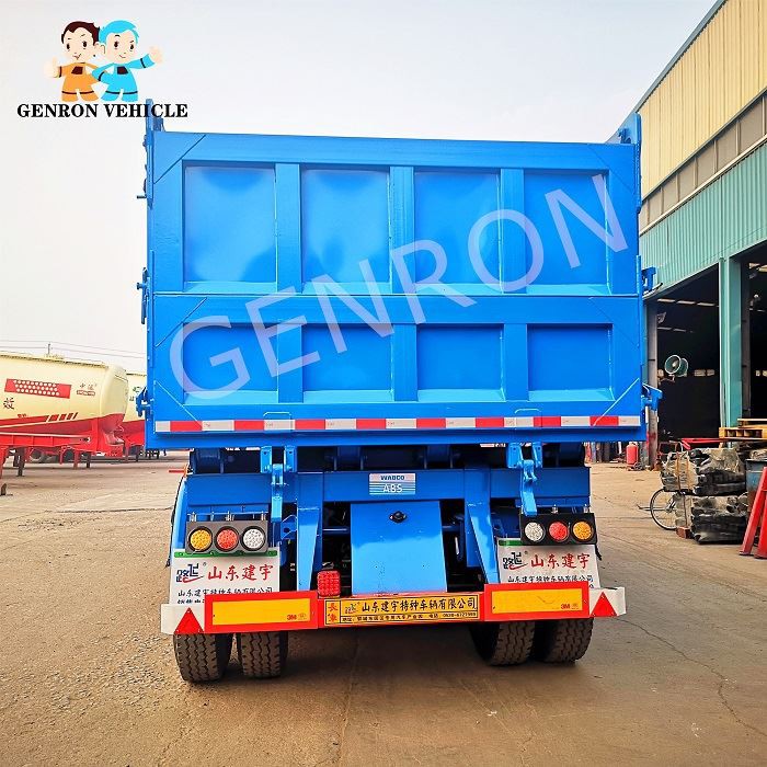 Dump semi trailer is suitable for coal, ore, construction materials and other bulk and scattered goods transport. 1. The carriage adopts roll-over and roll-over self-unloading mode, which can effectively transport bulk and scattered goods by loading and unloading machine. 2. The frame and rail are welded with high quality manganese plate. There are two kinds of dustpan and rectangle in the container. It has high strength, strong lifting force, good stiffness, good toughness, strong carrying capacity and no permanent deformation. 3. Excellent technology: the main components are processed by advanced equipment, and the longitudinal beam is welded by automatic submerged arc welding. The precise assembly of wheel shaft and steel leaf spring is carried out by the assembly machine.